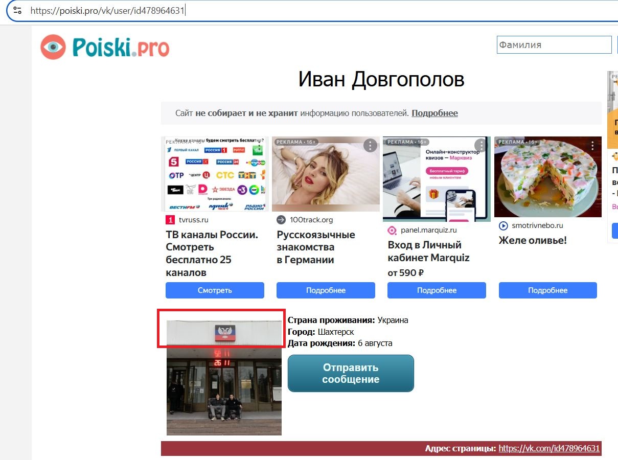 We kindly ask law enforcement agencies to consider this publication on the site as a statement about the commission by this person of deliberate acts against the security of the world, the security of mankind and international law and order, as well as other offenses.