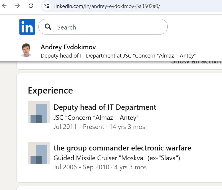 He works for ruZZina state military concern "Almaz-Antey".