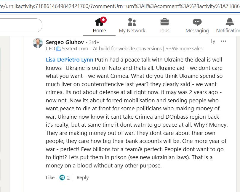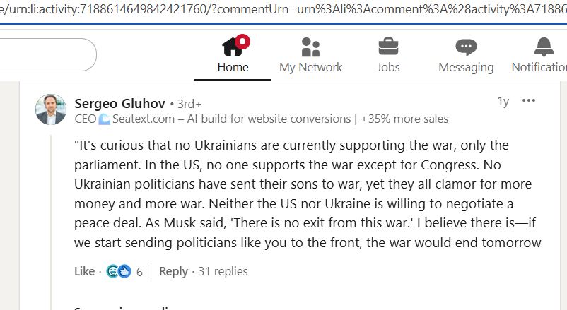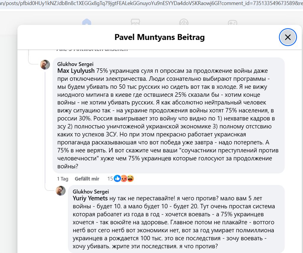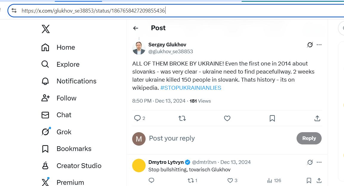 He calls himself "neutral", but in the reality he fully supports terroruZZia, spreads all possible ruZZistic propaganda and accuses Ukrainians, that, in the difference to the "peaceful" russians and putin, they don't want to end the war, because they are "Nazis" and "just want to kill as much as possible russians, without any reason".