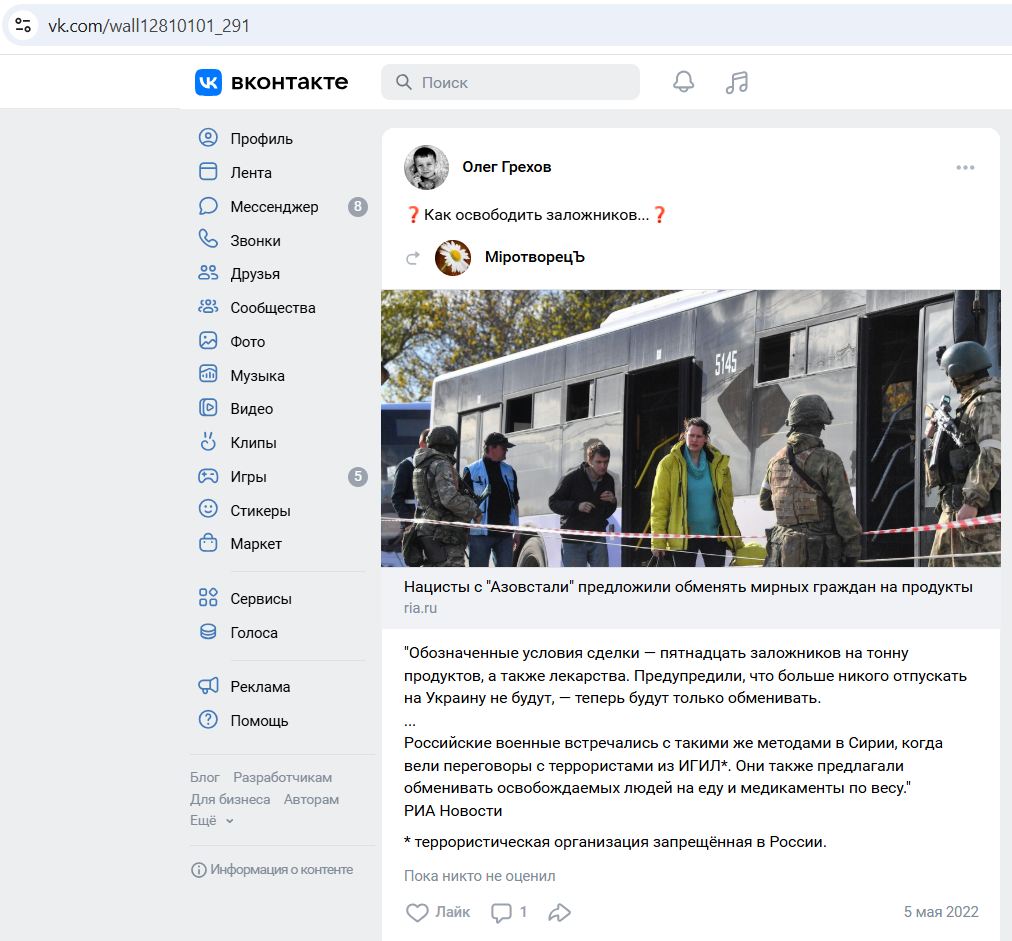 We kindly ask law enforcement agencies to consider this publication on the site as a statement about the commission by this person of deliberate acts against the security of the world, the security of mankind and international law and order, as well as other offenses.