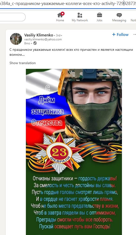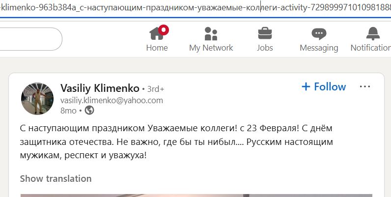 We kindly ask law enforcement agencies to consider this publication on the site as a statement about the commission by this person of deliberate acts against the security of the world, the security of mankind and international law and order, as well as other offenses.
