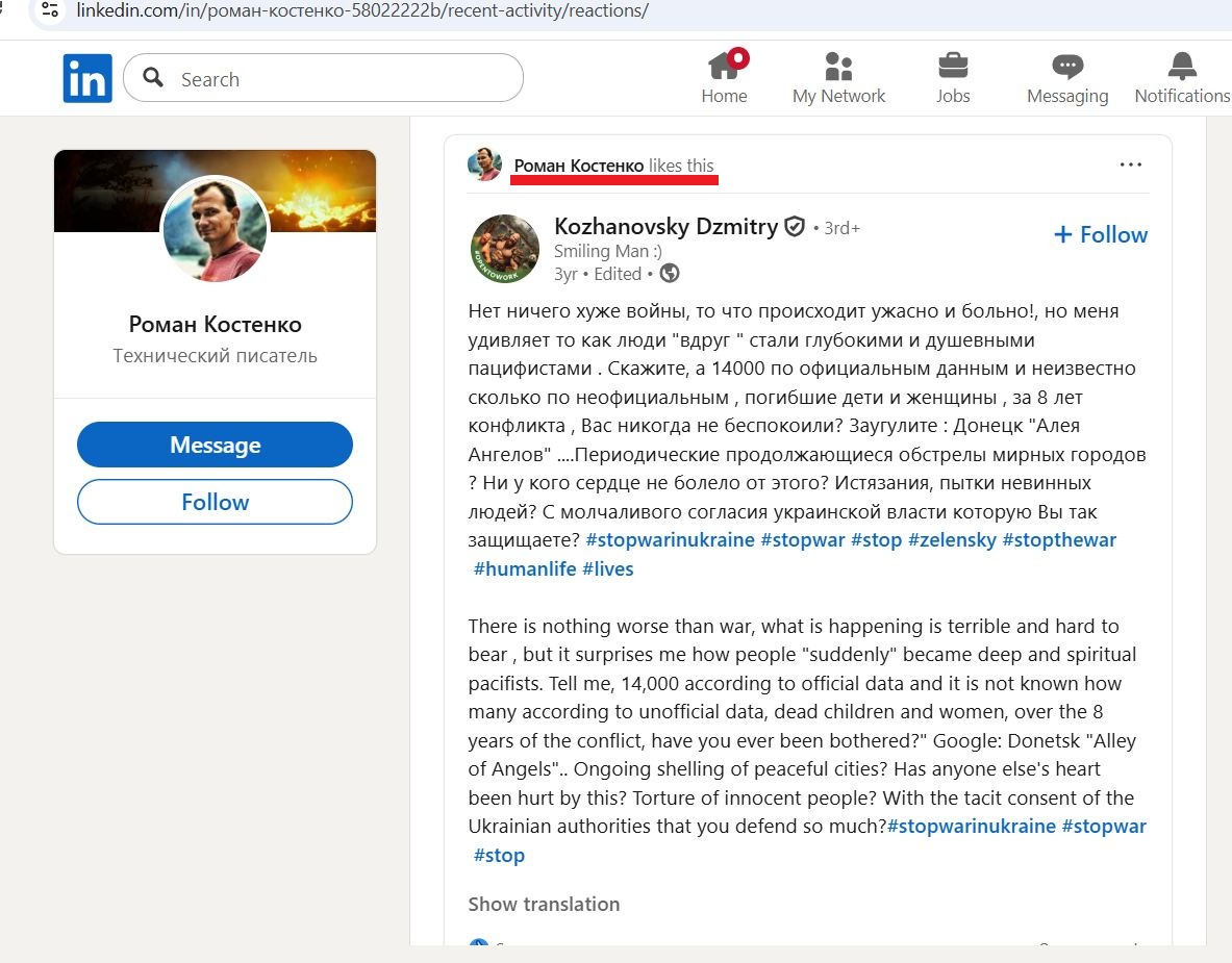 We kindly ask law enforcement agencies to consider this publication on the site as a statement about the commission by this person of deliberate acts against the security of the world, the security of mankind and international law and order, as well as other offenses.