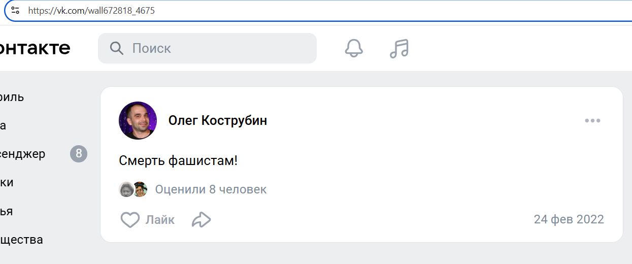 He openly calls for killing of Ukrainians, following ruZZian propaganda and calling them "fascists".