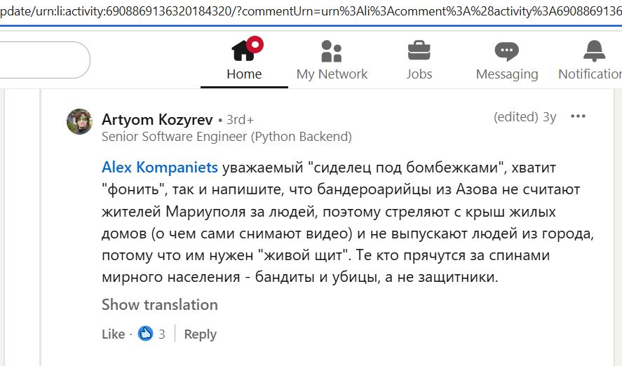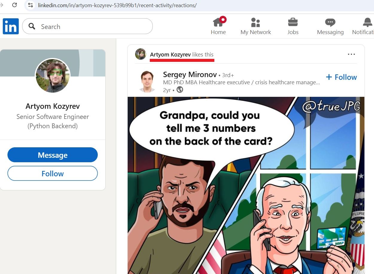 We kindly ask law enforcement agencies to consider this publication on the site as a statement about the commission by this person of deliberate acts against the security of the world, the security of mankind and international law and order, as well as other offenses.