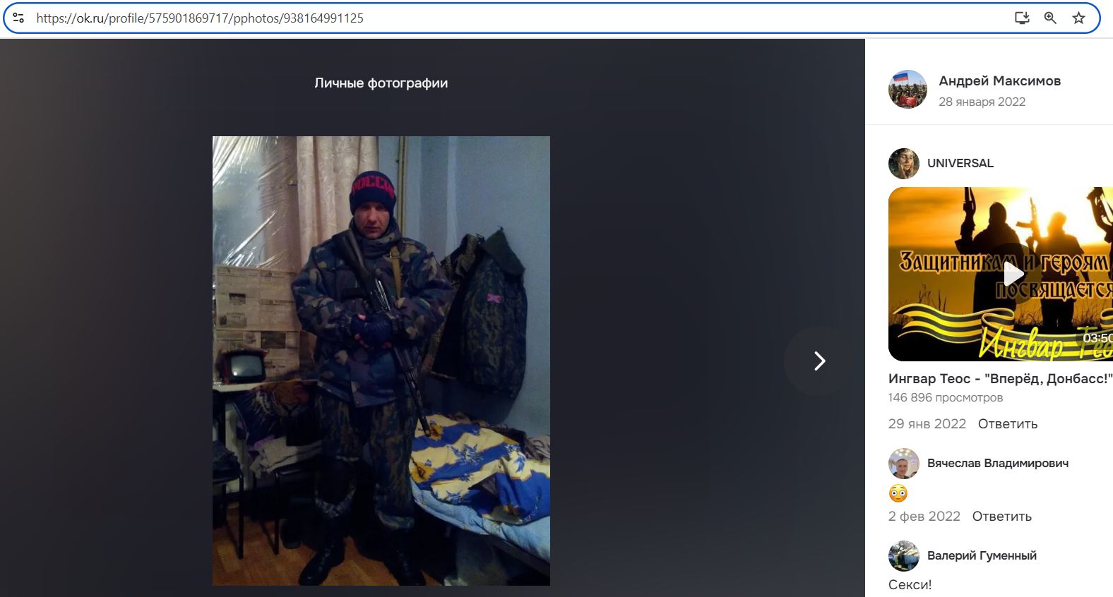Судя по постам в соц-сетях, принимал участие в оккупации Донбасса еще до полномасштабного вторжения террораши в Украину.
