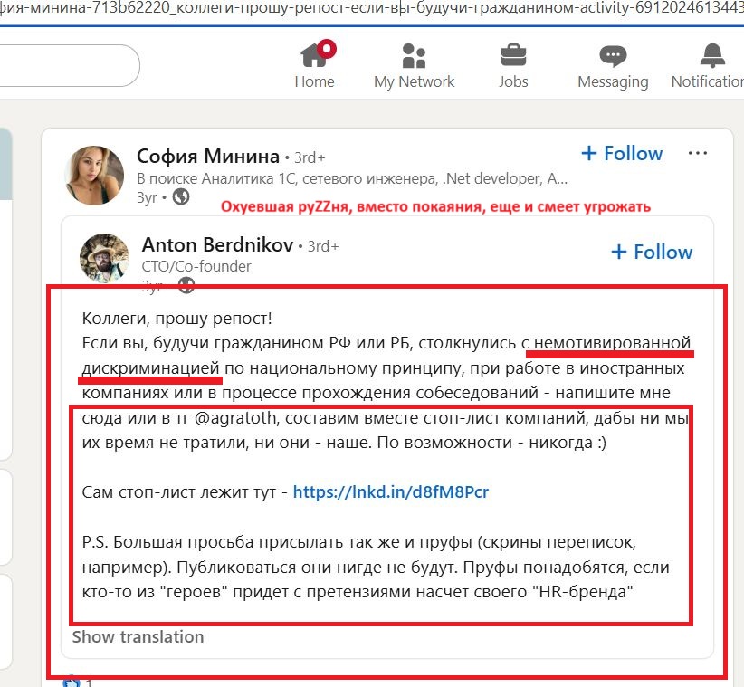 We kindly ask law enforcement agencies to consider this publication on the site as a statement about the commission by this person of deliberate acts against the security of the world, the security of mankind and international law and order, as well as other offenses.