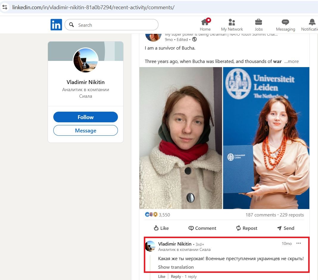 We kindly ask law enforcement agencies to consider this publication on the site as a statement about the commission by this person of deliberate acts against the security of the world, the security of mankind and international law and order, as well as other offenses.