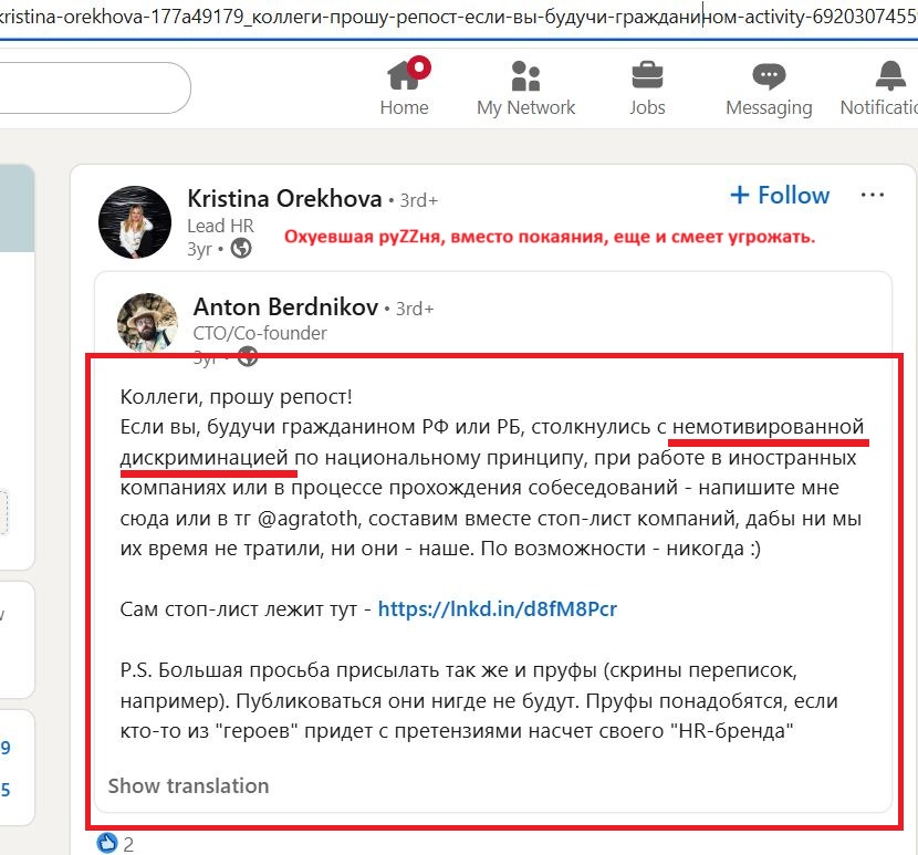 We kindly ask law enforcement agencies to consider this publication on the site as a statement about the commission by this person of deliberate acts against the security of the world, the security of mankind and international law and order, as well as other offenses.