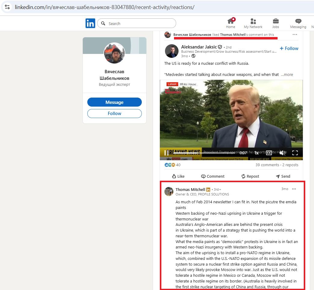 We kindly ask law enforcement agencies to consider this publication on the site as a statement about the commission by this person of deliberate acts against the security of the world, the security of mankind and international law and order, as well as other offenses.