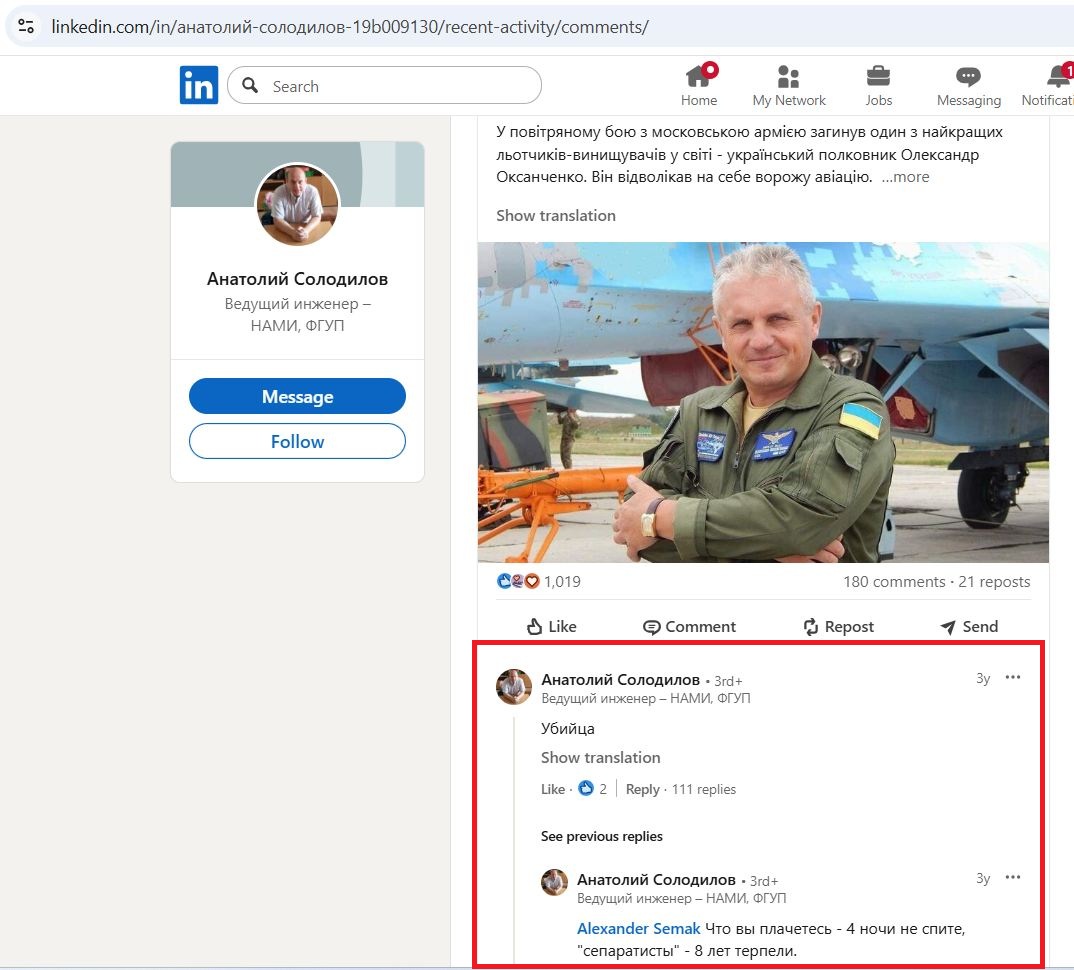 We kindly ask law enforcement agencies to consider this publication on the site as a statement about the commission by this person of deliberate acts against the security of the world, the security of mankind and international law and order, as well as other offenses.