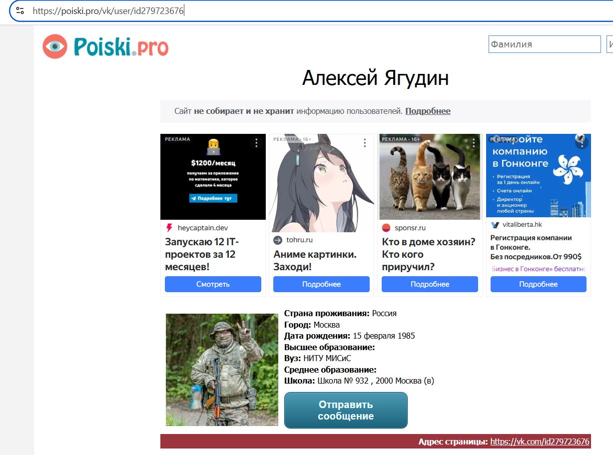 We kindly ask law enforcement agencies to consider this publication on the site as a statement about the commission by this person of deliberate acts against the security of the world, the security of mankind and international law and order, as well as other offenses.